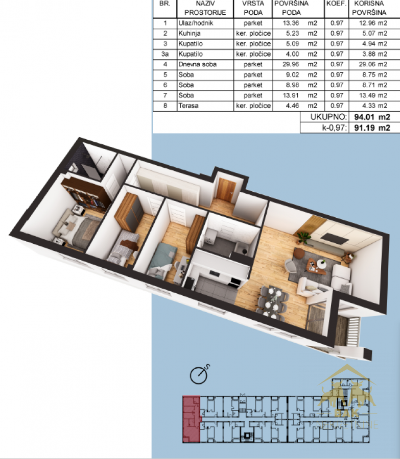• Veličina nekretnine: 94 m²