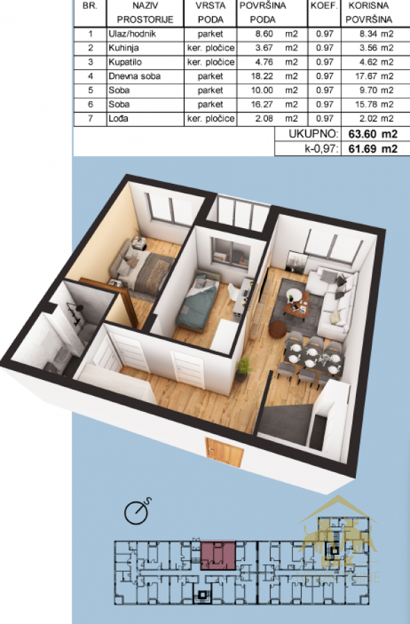• Veličina nekretnine: 64 m²