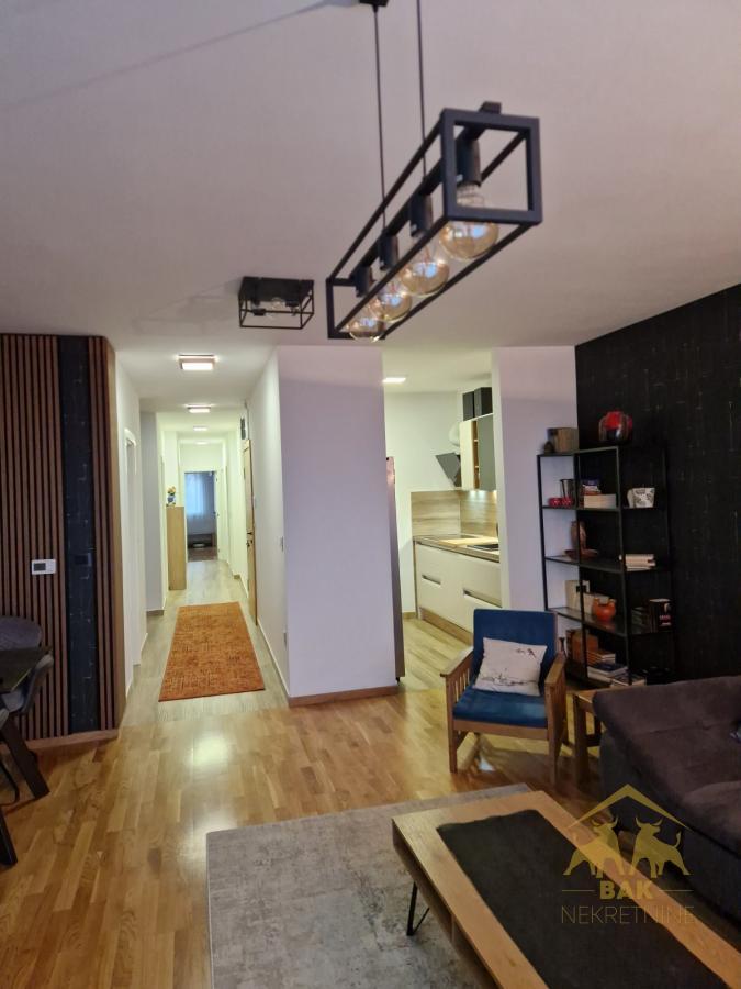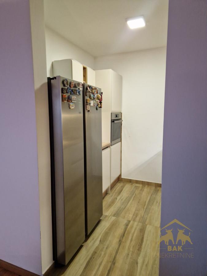 Predstavljamo vam stan koji spaja komfor, funkcionalnost i savremeni način života. Reč je o prostranom četvorosobnom stanu površine 98 m², smeštenom u mirnom i uređenom delu Petrovaradina, u blizini važnih saobraćajnica, škole, prodavnica i svih sadržaja potrebnih za svakodnevno funkcionisanje, a na svega nekoliko minuta vožnje od centra Novog Sada. Stan se odlikuje funkcionalnim i pažljivo osmišljenim rasporedom prostorija. Centralni deo čini prostran dnevni boravak povezan sa trpezarijom, iz kog se izlazi na terasu na kojoj se nalazi praktična ostava. Kuhinja je fizički odvojena zidom, što omogućava dodatnu privatnost i urednost prostora. Stan raspolaže sa tri komforne spavaće sobe, od kojih jedna ima izlaz na drugu terasu, čime se dobija dodatni osećaj prostora i svetlosti. Ukupno dve terase pružaju idealno mesto za odmor i uživanje. Stan poseduje dva kupatila, kao i funkcionalan hodnik koji povezuje sve prostorije. Svaki stan ima sopstveno grejanje i toplu vodu na gas, uz savremen sistem podnog grejanja koji je podesiv putem WiFi mreže, što omogućava maksimalnu udobnost i potpunu kontrolu potrošnje. Režijski troškovi su minimalni. U cenu stana uključeno je i parking mesto u dvorištu zgrade, što dodatno doprinosi komforu i praktičnosti svakodnevnog života. Takođe postoji mogućnost kupovine ostave u suterenu zgrade. Nameštaj je predmet dogovora, uz mogućnost korekcije cene. Ovaj stan je idealan izbor za one koji traže kvalitetan dom sa dovoljno prostora, modernim tehničkim rešenjima i odličnom lokacijom u mirnom delu Petrovaradina.