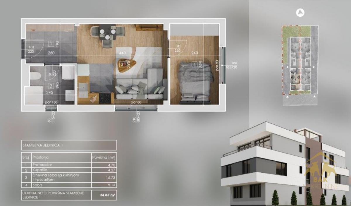 U ponudi je stan u izgradnji u mirnoj ulici na Telepu, u blizini Bulevara patrijarha Pavla. Zgrada je planirana sa malim brojem stanova, što obezbeđuje prijatniji i mirniji ambijent za stanovanje.Stan je površine 35 m², strukture jednoiposoban, i nalazi se na prvom spratu od ukupno dva. Završetak radova planiran je za početak 2027. godine. Cene su sa PDV-om, a kupovina je moguća i putem kredita. Grejanje je gasno, kombinovano, a svaki stan ima svoj gasni kotao. Za stanare je obezbeđeno slobodno parking mesto. Ovaj stan predstavlja dobru priliku za kupovinu nekretnine u kvalitetnoj i mirnoj lokaciji u Novom Sadu.