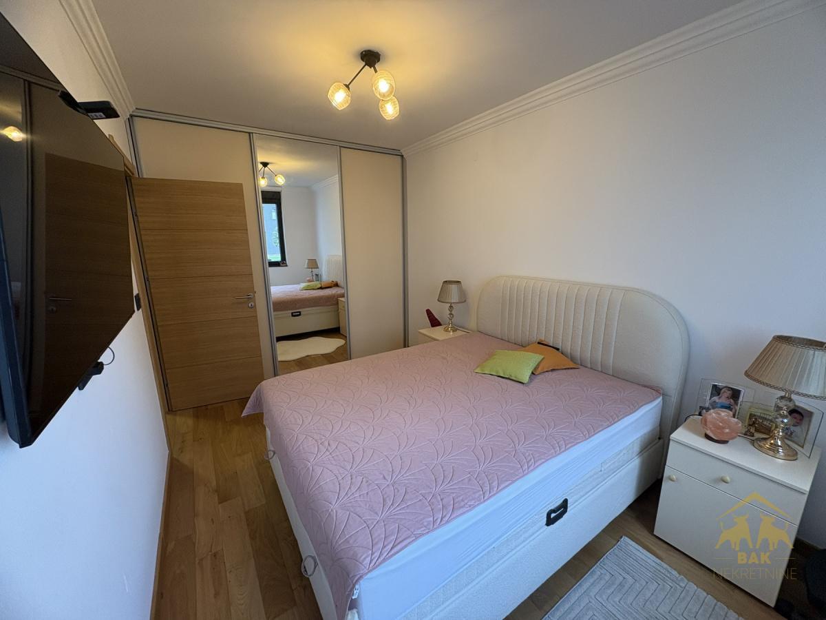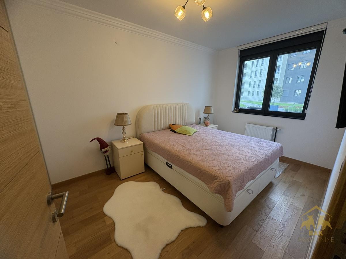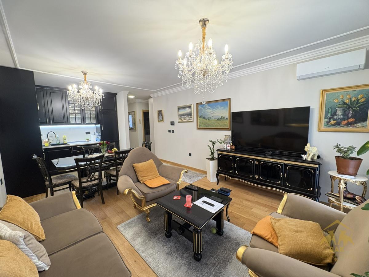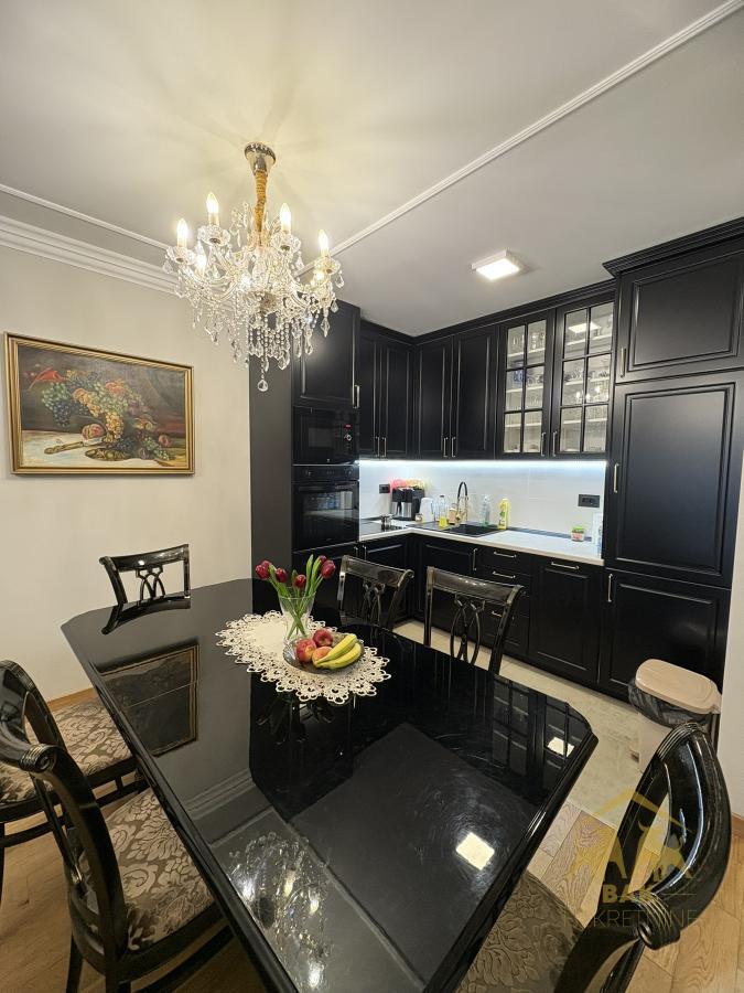 Retko u ponudi, luksuzan trosoban stan koji ostavlja bez daha već pri prvom koraku i nudi savršen spoj elegancije, komfora i vrhunske funkcionalnosti. Ova odmah useljiva nekretnina površine 72 m², sa pripadajućim parking mestom od 16 m² u zgradi i liftom, nalazi se u modernom Sajam kompleksu i predstavlja idealan izbor za sve koji žele život bez kompromisa. Stan se nalazi u novoj zgradi, uknjižen je i bez tereta, što omogućava sigurnu kupovinu i putem stambenog kredita. Svaki detalj u enterijeru pažljivo je biran kako bi pružio osećaj luksuza i sofisticiranosti, a stan se prodaje kompletno namešten, spreman za useljenje bez dodatnih ulaganja. Centralni deo stana čini prostran i svetao dnevni boravak povezan sa trpezarijom i moderno opremljenom kuhinjom, stvarajući elegantan open space ambijent idealan za svakodnevni život i prijem gostiju. Iz dnevnog boravka izlazi se na terasu koja poseduje i praktičnu hladnu ostavu. Hodnik diskretno odvaja dnevni od spavaćeg dela, gde se nalaze dve komforne spavaće sobe sa bračnim krevetima i ugradnim plakarima, orijentisane ka mirnoj dvorišnoj strani, što garantuje potpunu privatnost i tišinu. Stan raspolaže velikim kupatilom sa tuš kadom, kao i dodatnim toaletom u kom su smeštene mašina za pranje i sušenje veša, što značajno doprinosi svakodnevnoj praktičnosti. Grejanje je regulisano po utrošku putem kalorimetara, što omogućava potpunu kontrolu troškova i energetsku efikasnost. Ova nekretnina nije samo stan, već pažljivo dizajniran prostor koji pruža osećaj luksuza, sigurnosti i savremenog načina života, uz dodatnu vrednost sopstvenog parking mesta i vrhunske lokacije. Savršen izbor za one koji žele više od običnog doma.