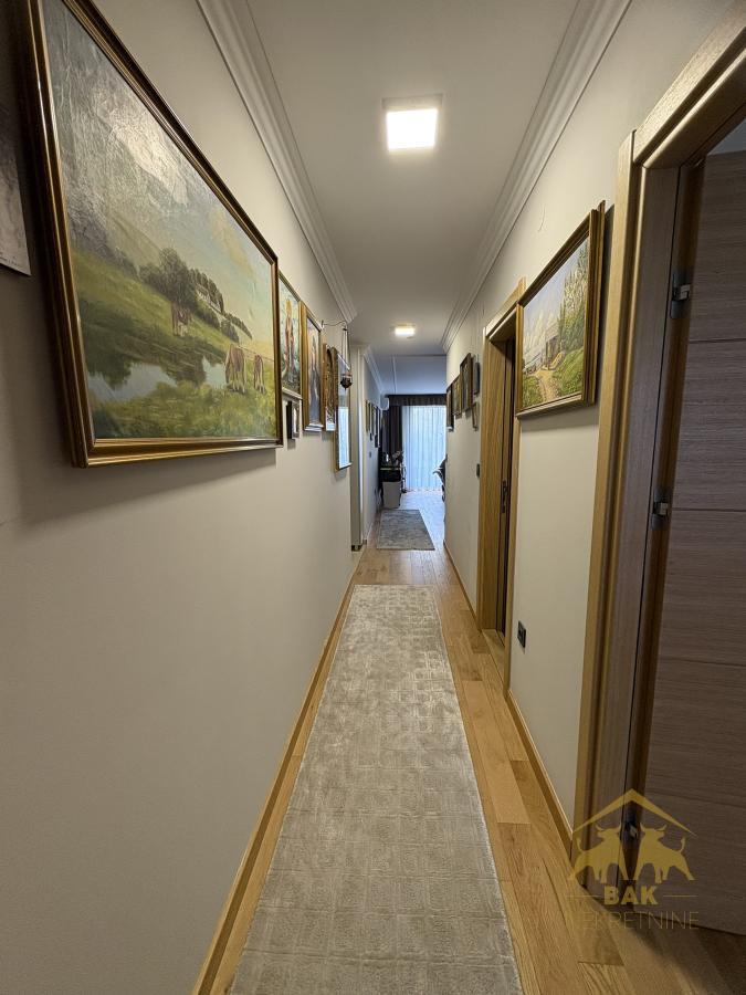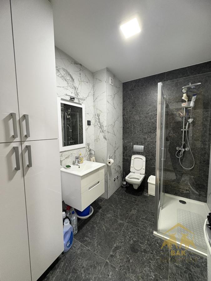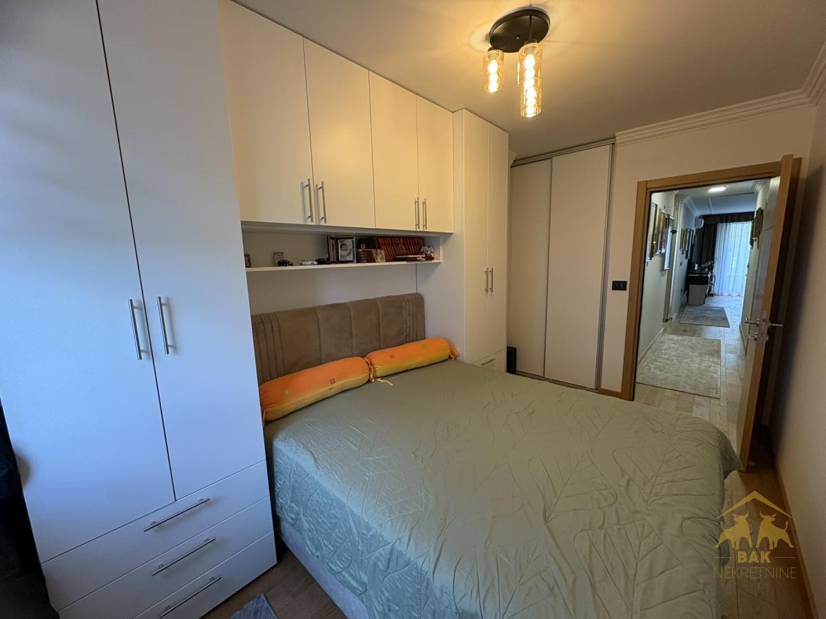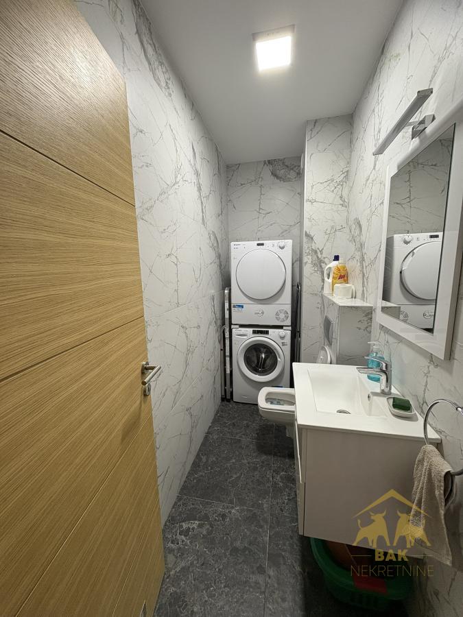 Retko u ponudi, luksuzan trosoban stan koji ostavlja bez daha već pri prvom koraku i nudi savršen spoj elegancije, komfora i vrhunske funkcionalnosti. Ova odmah useljiva nekretnina površine 72 m², sa pripadajućim parking mestom od 16 m² u zgradi i liftom, nalazi se u modernom Sajam kompleksu i predstavlja idealan izbor za sve koji žele život bez kompromisa. Stan se nalazi u novoj zgradi, uknjižen je i bez tereta, što omogućava sigurnu kupovinu i putem stambenog kredita. Svaki detalj u enterijeru pažljivo je biran kako bi pružio osećaj luksuza i sofisticiranosti, a stan se prodaje kompletno namešten, spreman za useljenje bez dodatnih ulaganja. Centralni deo stana čini prostran i svetao dnevni boravak povezan sa trpezarijom i moderno opremljenom kuhinjom, stvarajući elegantan open space ambijent idealan za svakodnevni život i prijem gostiju. Iz dnevnog boravka izlazi se na terasu koja poseduje i praktičnu hladnu ostavu. Hodnik diskretno odvaja dnevni od spavaćeg dela, gde se nalaze dve komforne spavaće sobe sa bračnim krevetima i ugradnim plakarima, orijentisane ka mirnoj dvorišnoj strani, što garantuje potpunu privatnost i tišinu. Stan raspolaže velikim kupatilom sa tuš kadom, kao i dodatnim toaletom u kom su smeštene mašina za pranje i sušenje veša, što značajno doprinosi svakodnevnoj praktičnosti. Grejanje je regulisano po utrošku putem kalorimetara, što omogućava potpunu kontrolu troškova i energetsku efikasnost. Ova nekretnina nije samo stan, već pažljivo dizajniran prostor koji pruža osećaj luksuza, sigurnosti i savremenog načina života, uz dodatnu vrednost sopstvenog parking mesta i vrhunske lokacije. Savršen izbor za one koji žele više od običnog doma.