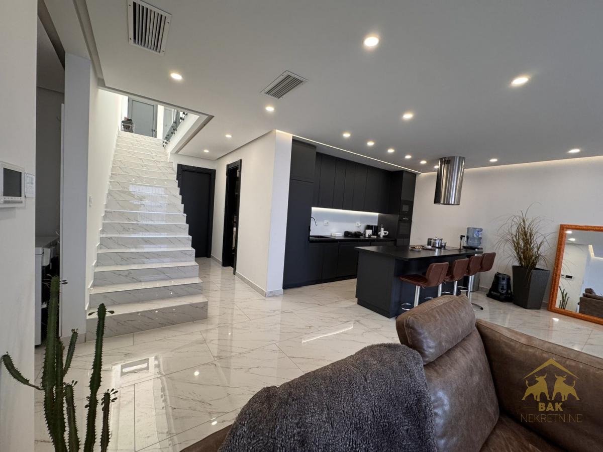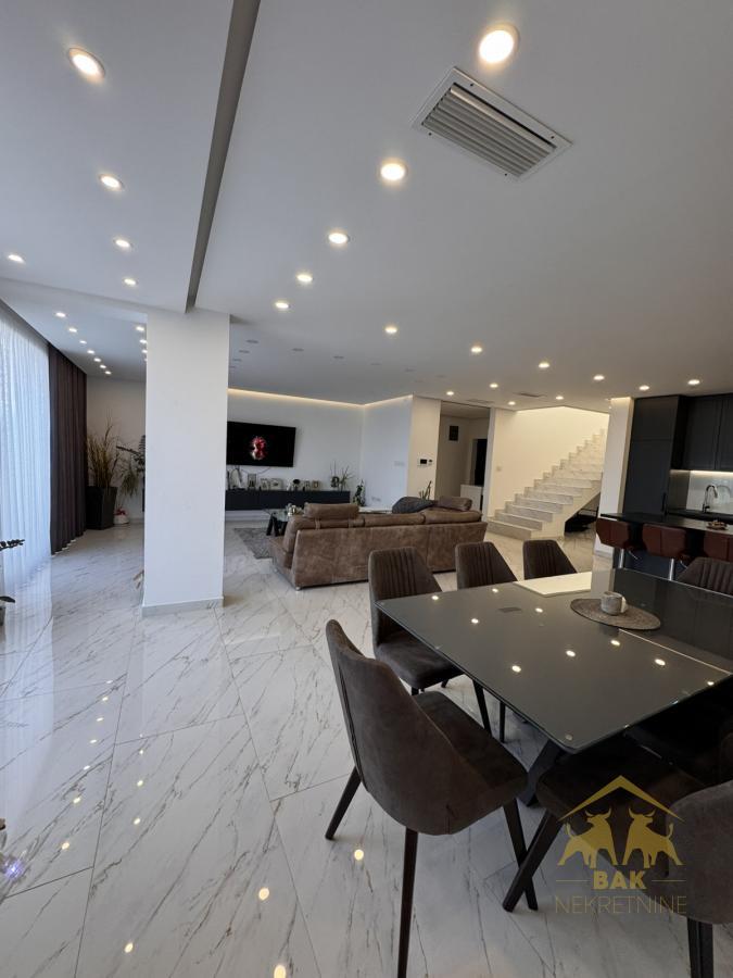 Na jednom od najcenjenijih uzvišenja Sremske Kamenice, u okruženju mira, zelenila i savremene arhitekture, nalazi se kuća koja objedinjuje luksuz, funkcionalnost i dugoročnu vrednost. Smeštena u zoni prepoznatljivoj po ekskluzivnim porodičnim rezidencijama, ova nekretnina pruža idealan balans između privatnosti i blizine urbanih sadržaja. Kuća je izgrađena 2021. godine, na parceli gradskog građevinskog zemljišta površine 534 m², sa urednom dokumentacijom i izdatom upotrebnom dozvolom. Ukupna stambena površina od 230 m² pažljivo je osmišljena kako bi svaki deo prostora imao jasnu svrhu, ali i osećaj lakoće i komfora. Spratnost objekta omogućava prirodnu podelu dnevne i noćne zone, što dodatno doprinosi kvalitetu svakodnevnog života. Centralni deo kuće čini prostran dnevni boravak, povezan sa trpezarijom i kuhinjom u jedinstvenu, svetlu celinu, idealnu kako za porodična okupljanja, tako i za prijem gostiju. Velike staklene površine unose obilje prirodne svetlosti i stvaraju prijatan ambijent tokom čitavog dana. Noćni deo sastoji se od četiri komforne spavaće sobe, dve moderno opremljene kupatilske celine i dodatnog toaleta, dok garderober, hodnici i terasa dodatno doprinose funkcionalnosti prostora. U sklopu objekta nalazi se i garaža. Grejanje je kombinovano, što omogućava visok nivo energetske efikasnosti i prilagodljivost potrebama budućih vlasnika. Kvalitet gradnje, savremeni materijali i promišljen raspored prostora čine ovu kuću nekretninom bez potrebe za dodatnim ulaganjima. Posebna vrednost ove ponude ogleda se u potencijalu gde parcela i pozicija omogućavaju dogradnju ili prenamenu objekta u mini urbanu vilu, što ovu kuću čini izuzetno atraktivnom. Ovo nije samo kuća, već prostor koji nudi sigurnost, komfor i stil života na jednoj od najpoželjnijih lokacija u Sremskoj Kamenici.