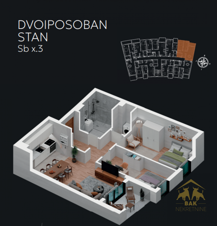 Predstavljamo Vam dvoiposoban stan u srcu Podbare, jedne od najautentičnijih i najbrže rastućih gradskih četvrti, gradi se moderan stambeni kompleks koji spaja udobnost, funkcionalnost i savremeni način života. U ponudi je stan u izgradnji, smešten u mirnom, ali odlično povezanom okruženju – idealan za porodičan život, ali i za one koji vole gradski puls. Kompleks je pažljivo osmišljen da zadovolji sve potrebe savremenog stanovanja. Obezbeđeno je obilje parking mesta, a tu su i uređeno dečije igralište, vrtić, kao i marketi, apotekе, restorani, kafići i fitnes centar – sve na nekoliko koraka od vašeg doma. Dodatna prednost je izuzetna lokacija – na samo par minuta hoda od Beogradskog keja, jednog od najlepših šetališta u Novom Sadu, idealnog za jutarnje trčanje, večernje šetnje ili opuštanje uz reku. Stanovi se grade prema najvišim standardima, uz upotrebu kvalitetnih materijala, sa akcentom na udobnost, svetlost i funkcionalnu organizaciju prostora. Ovo nije samo mesto za stanovanje – ovo je prostor u kojem možete živeti punim plućima.