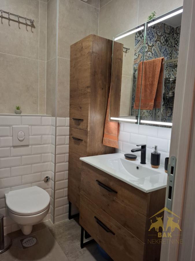 Predstavljamo vam moderan trosoban stan površine 59 m² na Telepu, u neposrednoj blizini Bulevara patrijarha Pavla, smešten u novoizgrađenom stambenom objektu. Okruženje je mirno i prijatno, a istovremeno odlično povezano sa svim važnim gradskim sadržajima, što ovu nekretninu čini idealnom kako za porodični život, tako i za investiciju. Stan je završen 2025. godine i useljen pre svega mesec dana, te predstavlja potpuno novu nekretninu bez ikakvih dodatnih ulaganja. Prostor je pažljivo osmišljen i maksimalno iskorišćen. Dnevni boravak je povezan sa trpezarijom i kuhinjom, koja je šankom diskretno odvojena, čime je postignut savremen i funkcionalan raspored. Iz dnevne sobe, kao i iz jedne spavaće sobe, omogućen je izlaz na terasu, koja dodatno doprinosi osećaju komfora i svetlosti. Stan raspolaže sa dve spavaće sobe, kupatilom i hodnikom, a zbog ulične orijentacije prostor je svetao i prozračan tokom većeg dela dana. Grejanje je na gas, što omogućava efikasnu i ekonomičnu potrošnju tokom zimskih meseci. Nekretnina se prodaje kompletno nameštena, sa modernim i pažljivo biranim nameštajem, te je budućem vlasniku omogućeno trenutno useljenje. Spoj nove gradnje, kvalitetne lokacije i funkcionalnog rasporeda čini ovaj stan izuzetnom prilikom za one koji traže udoban i savremen životni prostor.
