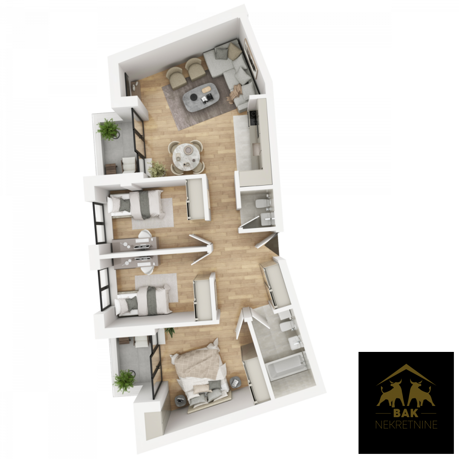 Predstavljamo Vam četvorosoban stan na prvom spratu zgrade savremenog dizajna koja je u fazi izgradnje. Stan je urađen uz upotrebu kvalitetnih materijala, što garantuje dugotrajan komfor i funkcionalnost. Zgrada se odlikuje modernim pristupom.
