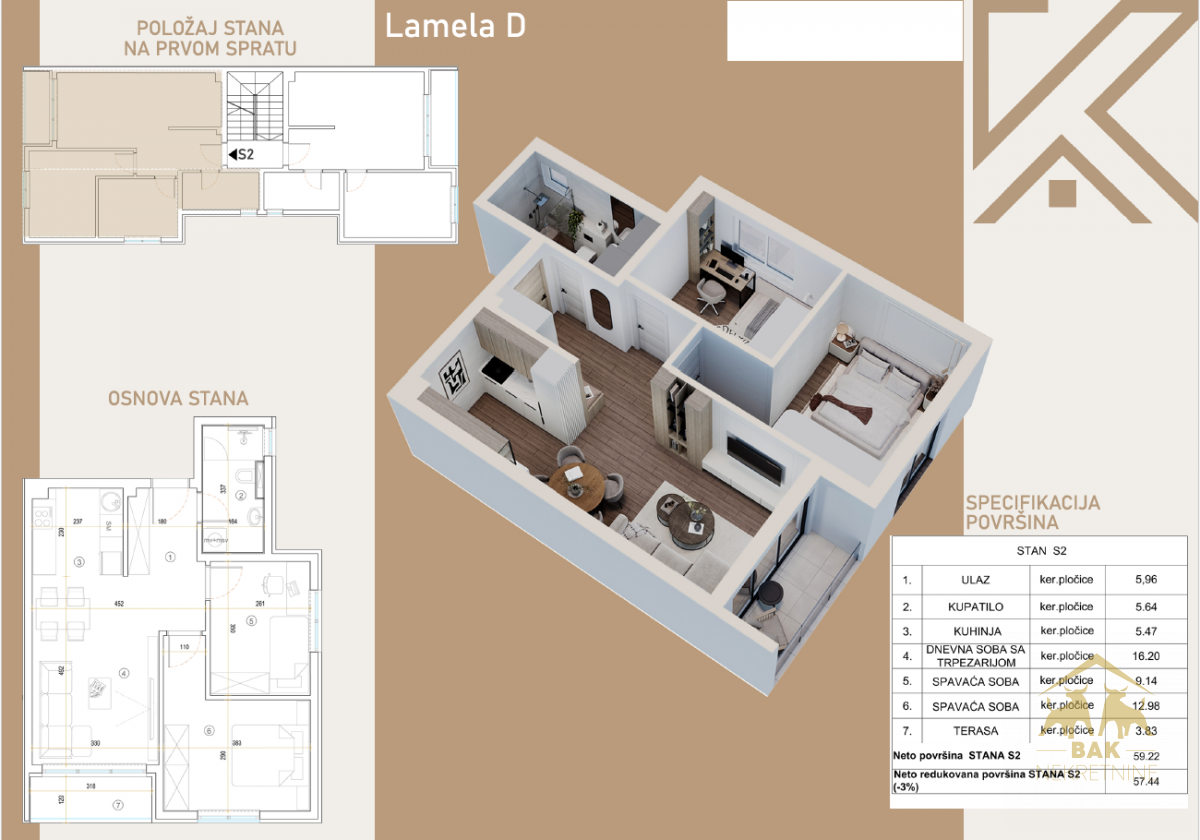 • Veličina nekretnine: 57 m²