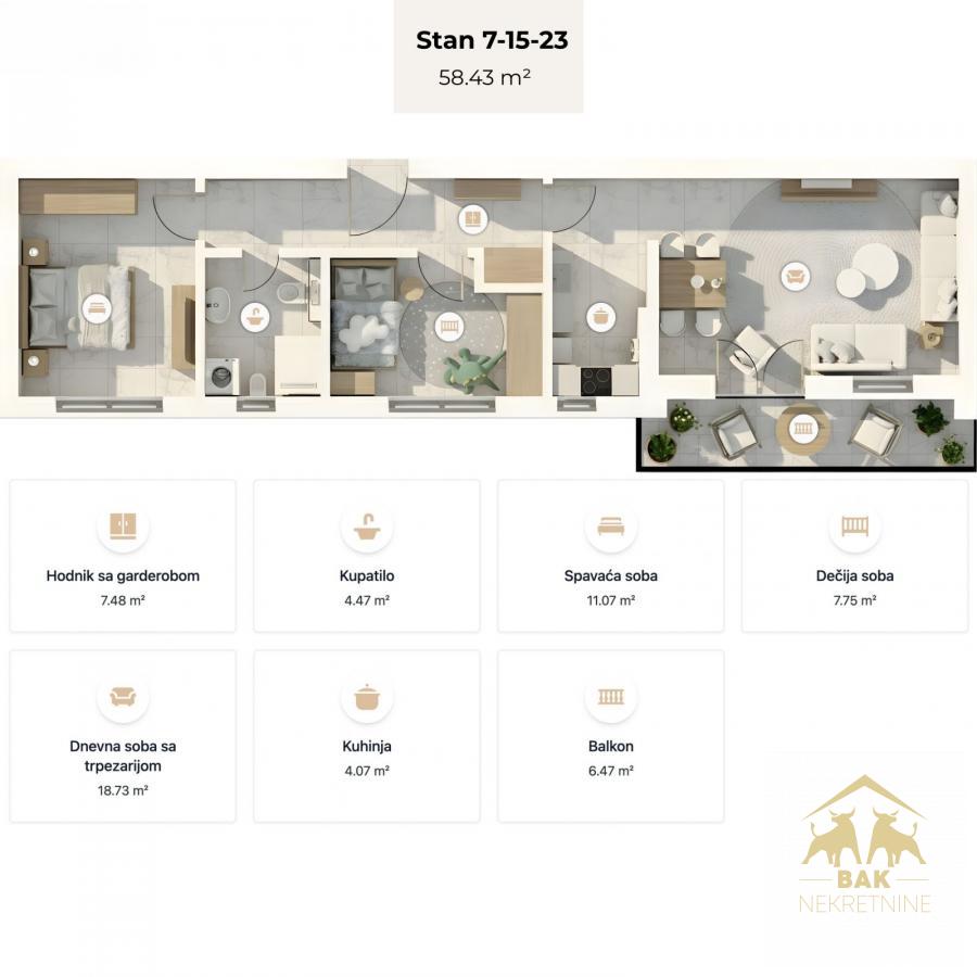 • Veličina nekretnine: 58 m²