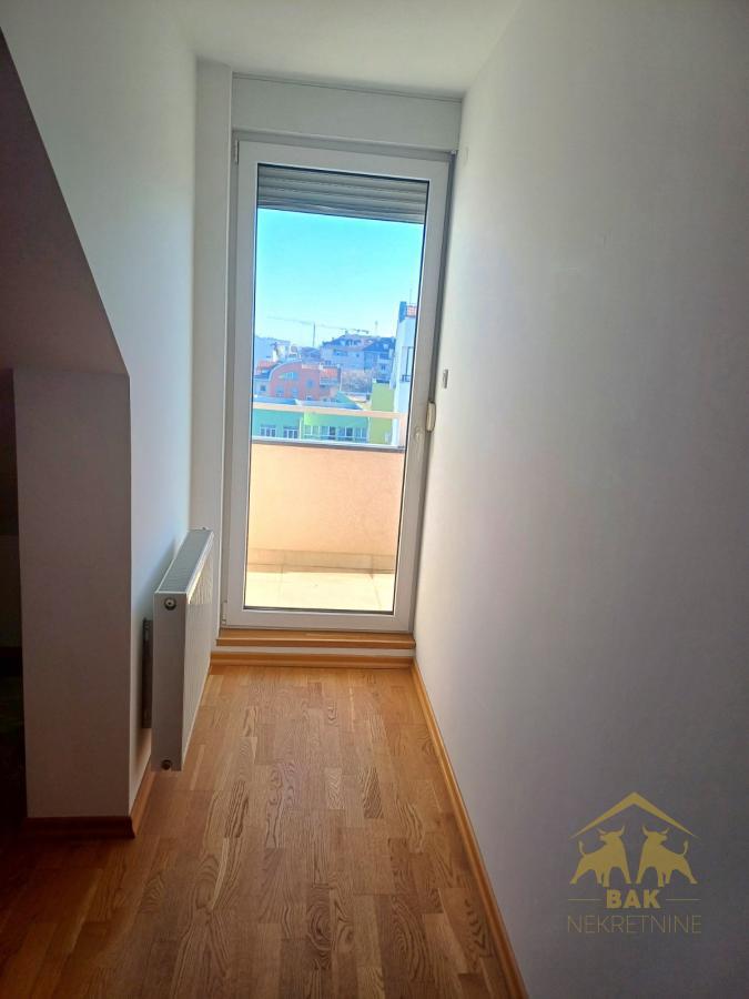 Predstavljamo vam idealan stan kako za život tako i za izdavanje, stan se sastoji od dnevne sobe, kuhinje, dva kupatila, dve spavaće sobe i dve terase. Blizina marketa, autobuskog stajališta, škole i vrtića. Troskovi: Informatika oko 2500, plus struja i gas koliko se potroši. Mogucnost postavljana Solarne elektrane na ravnim povrsinama I na krovu. Duplex moguce razdvojiti na 2 stambene jedinice: sprat i potkrovlje, oba sa kupatilima. Idealno za mini Hostel. Pokriveno parking mesto sa mogucnosti rentiranja jos 2 Parking mesta u dvirištu zgrade. Pogled na Centar grada I Crveni Cot tv toranj i Frusku goru, Mogucnost otvaranja Sanka-praznog prozora izmedju kuhinje I velike sobe.