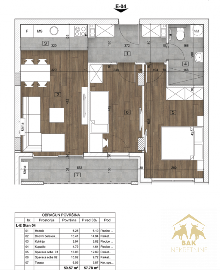 Predstavljamo vam odličan trosoban stan u izgradnji, površine 58 m², izuzetno funkcionalnog rasporeda, namenjen savremenom načinu stanovanja. Nalazi se u izuzetno atraktivnom delu grada, u blizini glavnih saobraćajnica i svih sadržaja potrebnih za svakodnevni život. Stan je projektovan sa ciljem optimalnog iskorišćenja prostora i postizanja maksimalne udobnosti. Dnevni boravak, povezan sa trpezarijom i kuhinjom u otvorenom konceptu, čini centralni deo stana i pruža prijatan ambijent za svakodnevni boravak. Dve odvojene spavaće sobe omogućavaju funkcionalnu organizaciju prostora, bilo za porodično stanovanje ili kombinaciju stanovanja i rada od kuće. Kupatilo je moderno projektovano, dok hodnik pruža prostor za ugradne plakare i dodatno odlaganje. Terasa predstavlja dodatnu vrednost, kao prostor za odmor i boravak na otvorenom. Objekat je u izgradnji i realizuje se u skladu sa savremenim standardima gradnje, uz primenu kvalitetnih materijala i završnih rešenja. Posebna pažnja posvećena je energetskoj efikasnosti, a grejanje na gas omogućava racionalne troškove i pouzdan sistem tokom cele godine. Lokacija je pažljivo pozicionirana tako da obezbeđuje mirno okruženje, uz istovremenu blizinu prodavnica, obrazovnih ustanova, vrtića, kao i linija gradskog prevoza, što ovu nekretninu čini pogodnom kako za život, tako i kao investiciju. Postoji mogućnost kupovine garažnog parking mesta u okviru objekta, što dodatno doprinosi komforu i praktičnosti svakodnevnog života.