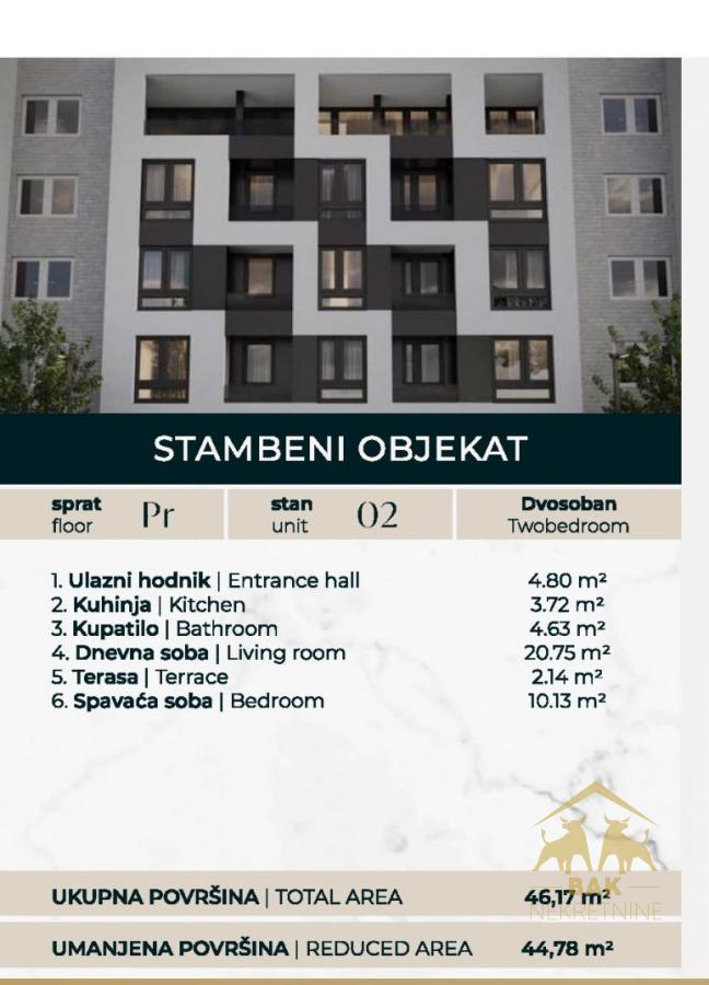Projekat koji vam predstavljamo je novogradnja renomiranog investitora koji ima za cilj da ponudi budućim stanarima mnogo više od običnog stanovanja kao i da život u njima učine lepšim, sigurnim i lakšim. Projekat je arhitektonski kreiran i implementiran na jedinstven način. Posebnost koju objekat nosi je estetski momenat, odnosno sam dizajn eksterijera kojim se postiže ambijentalno uklapanje objekta u okolinu u kojoj će se nalaziti. Svi najvažniji gradski sadržaji vrtić, škola, prevoz, marketi su u neposrednoj blizini zgrade. Takođe, jednaka pažnja posvećena je dizajnu enterijera. Skladom dizajnersko-arhitektonskih rešenja investitor nastoji da izgradi objekat koji će zadovoljiti i visoke zahteve tržišta. U ponudi su stanovi različitih veličina i struktura od jednosobnih, dvosobnih i trosobnih stanova. Kupac prve nekretnine ima pravo na povrat pdv-a. Postoji mogućnost kupovine garažnih mesta u suterenu zgrade. Vaš novi dom čeka na vas. Za više informacija kao i razgledanje stanova slobodno nas kontaktirajte.